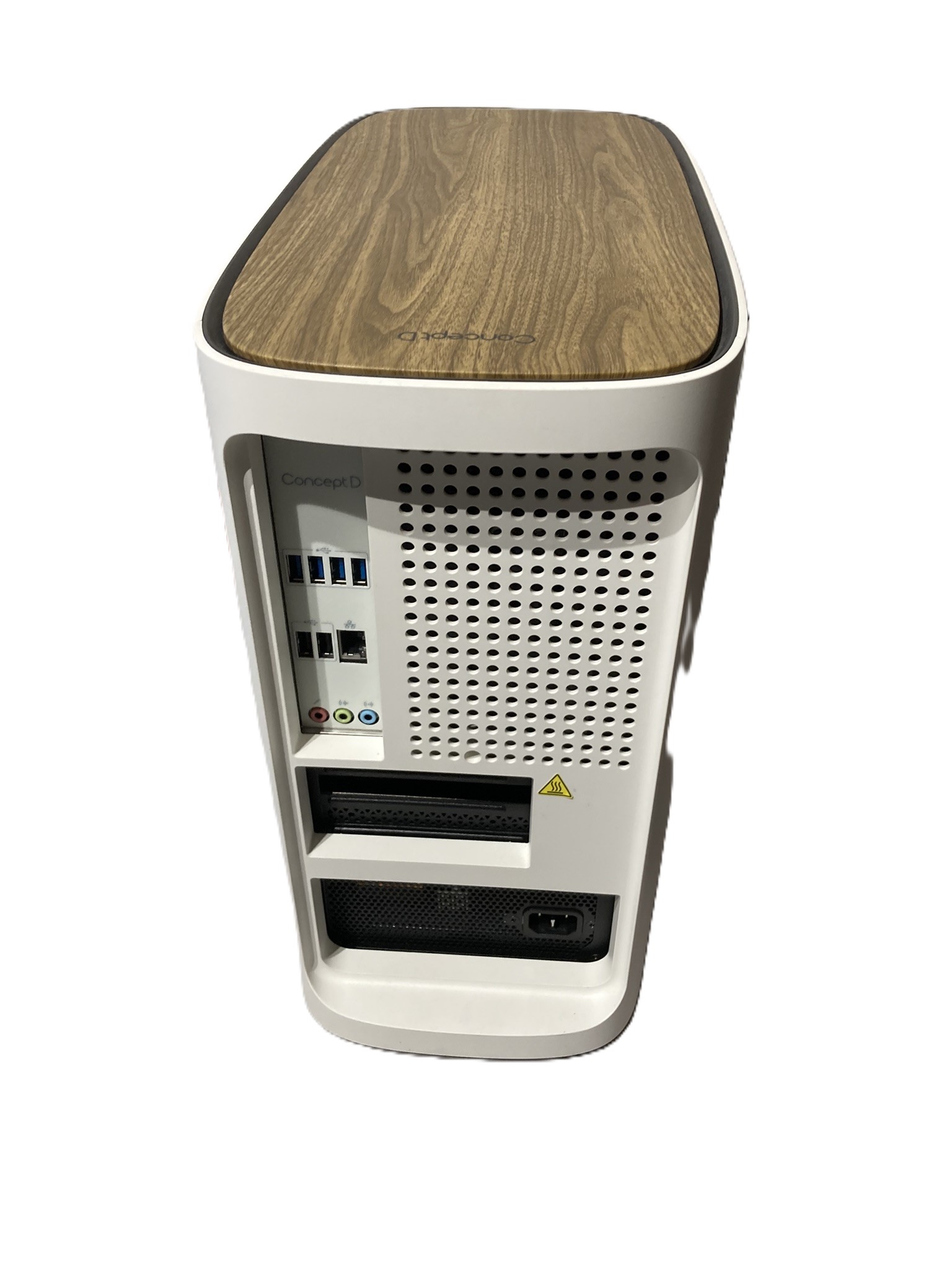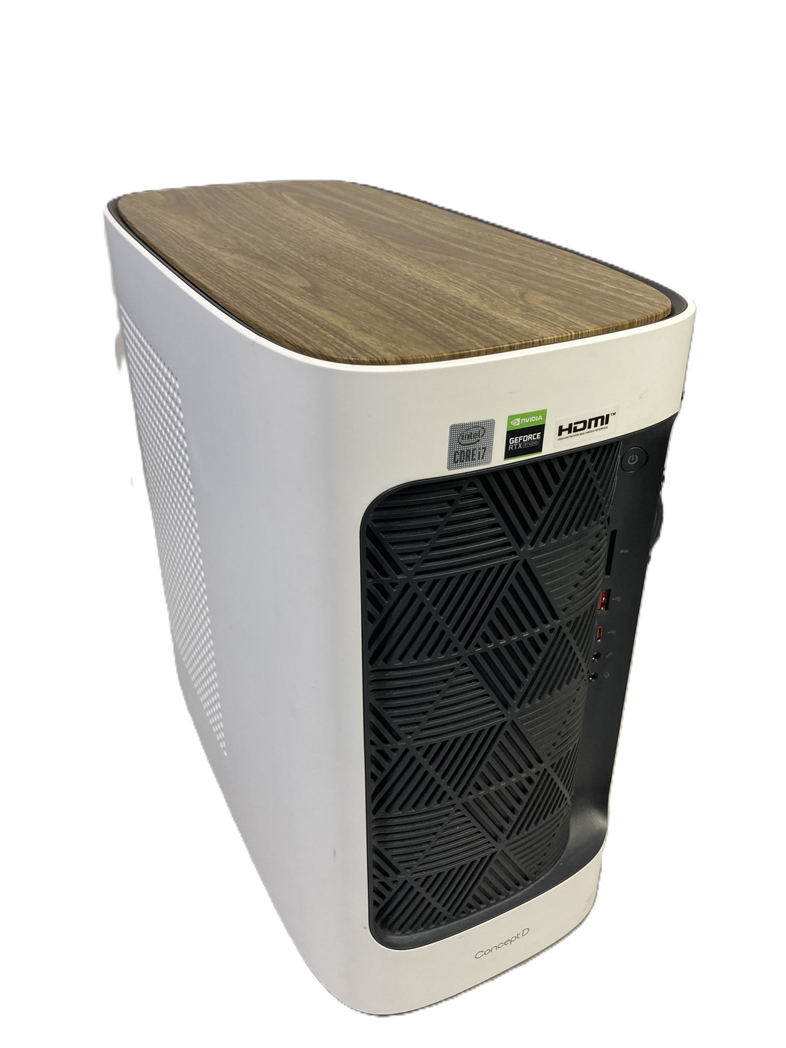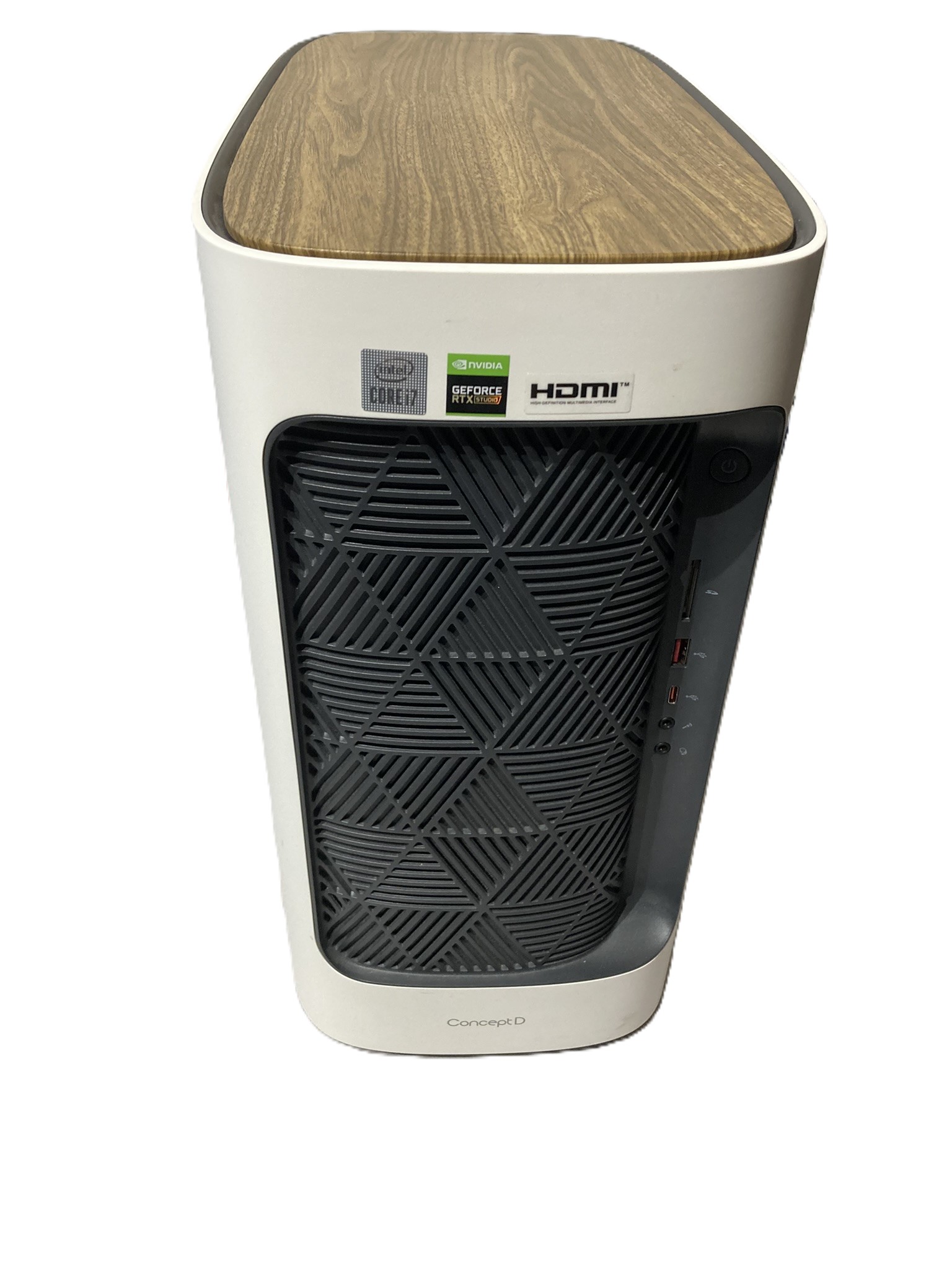 | Boîtier | Acer Concept ID – USB-C + SD façade, panneau bois, 2x venti 140mm |